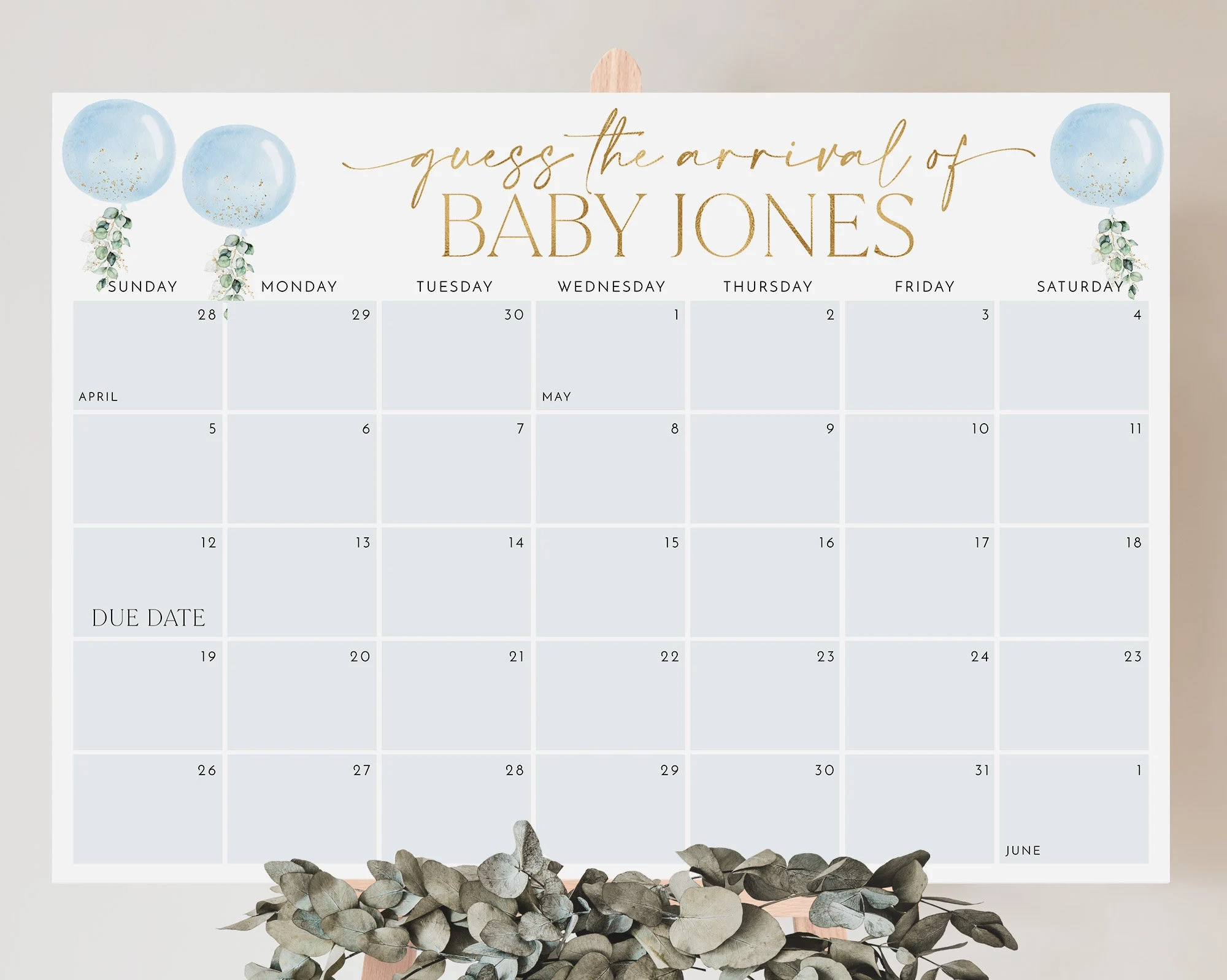 Baby Due Date Sign Guess The Birthday Baby Shower Game Baby Calendar Printable Editable Template Instant Download Templett 043 101GDD