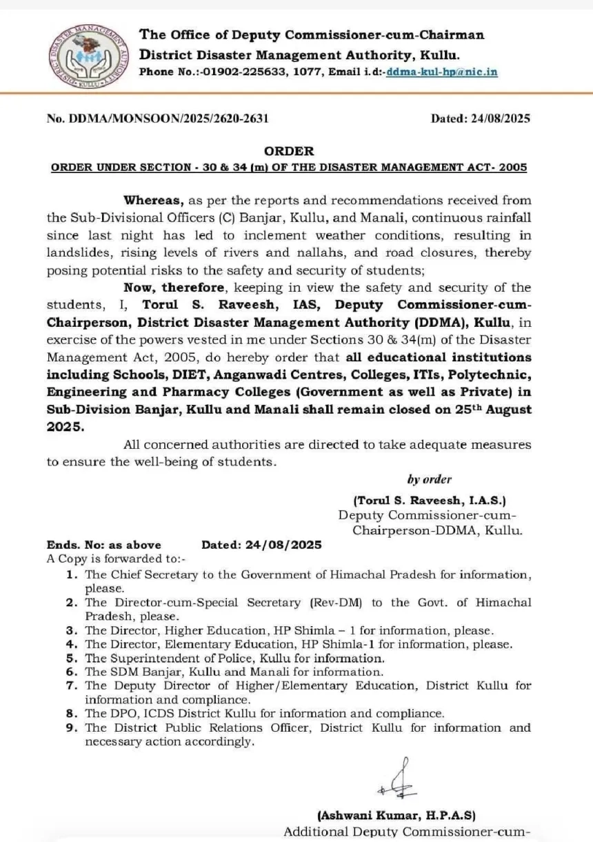 All Educational Institutions To Remain Closed In Kullu Breaking News Flash News Crazynewsindia