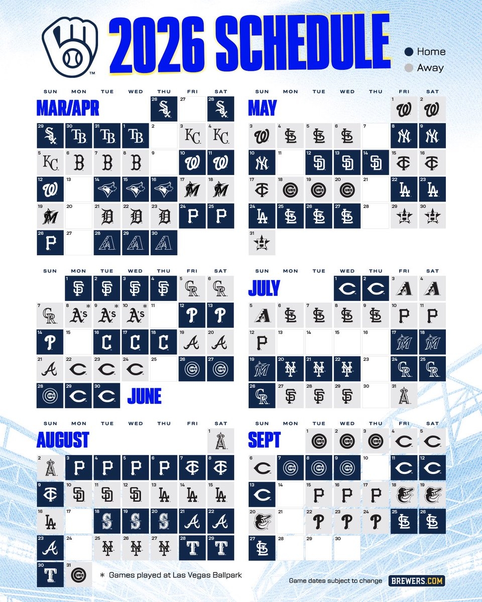 Brewers Announce 2026 Regular Season Schedule Milwaukee Record