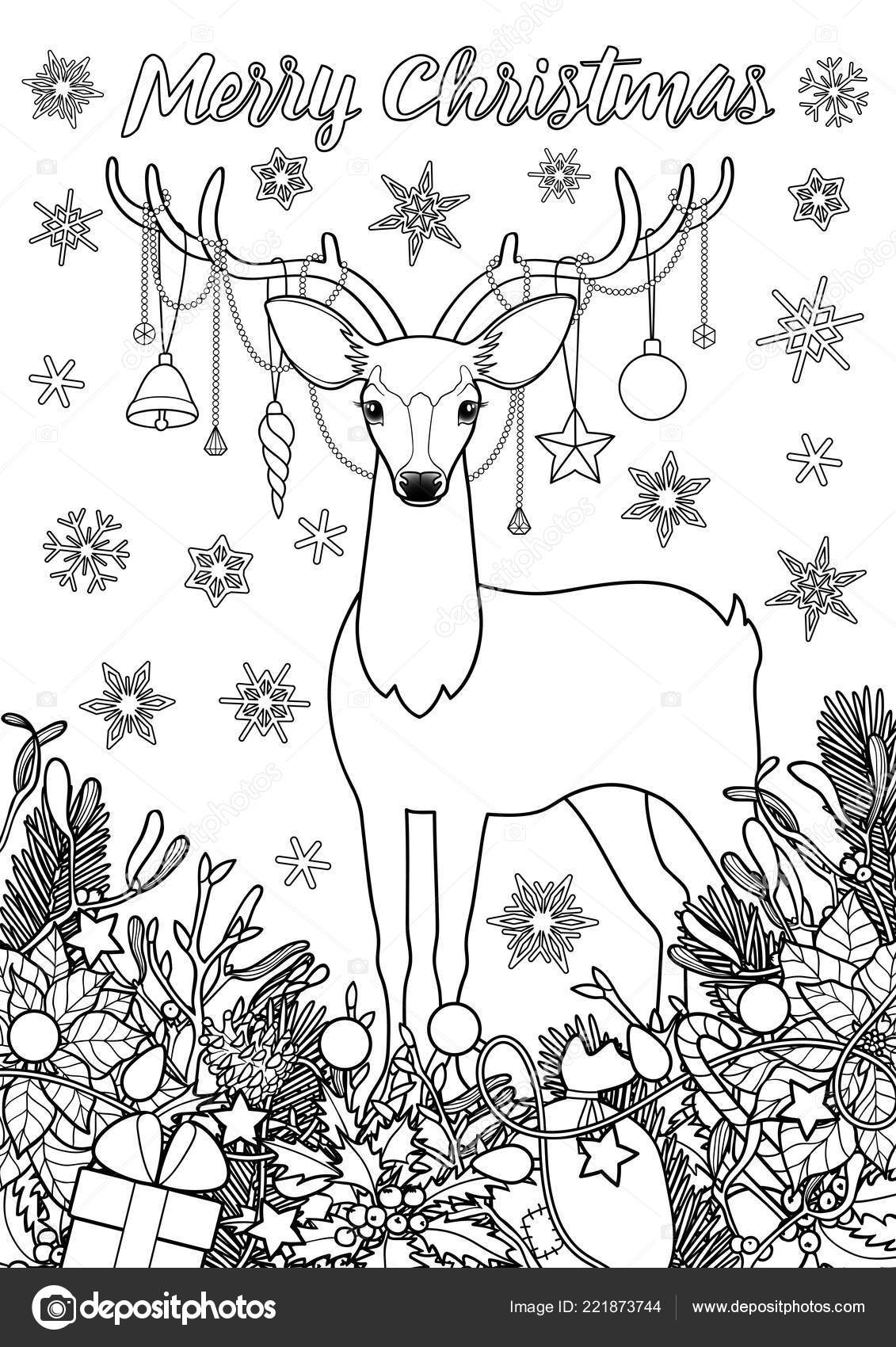 Free Drawing Coloring Christmas Reindeer Decorating A Tree
