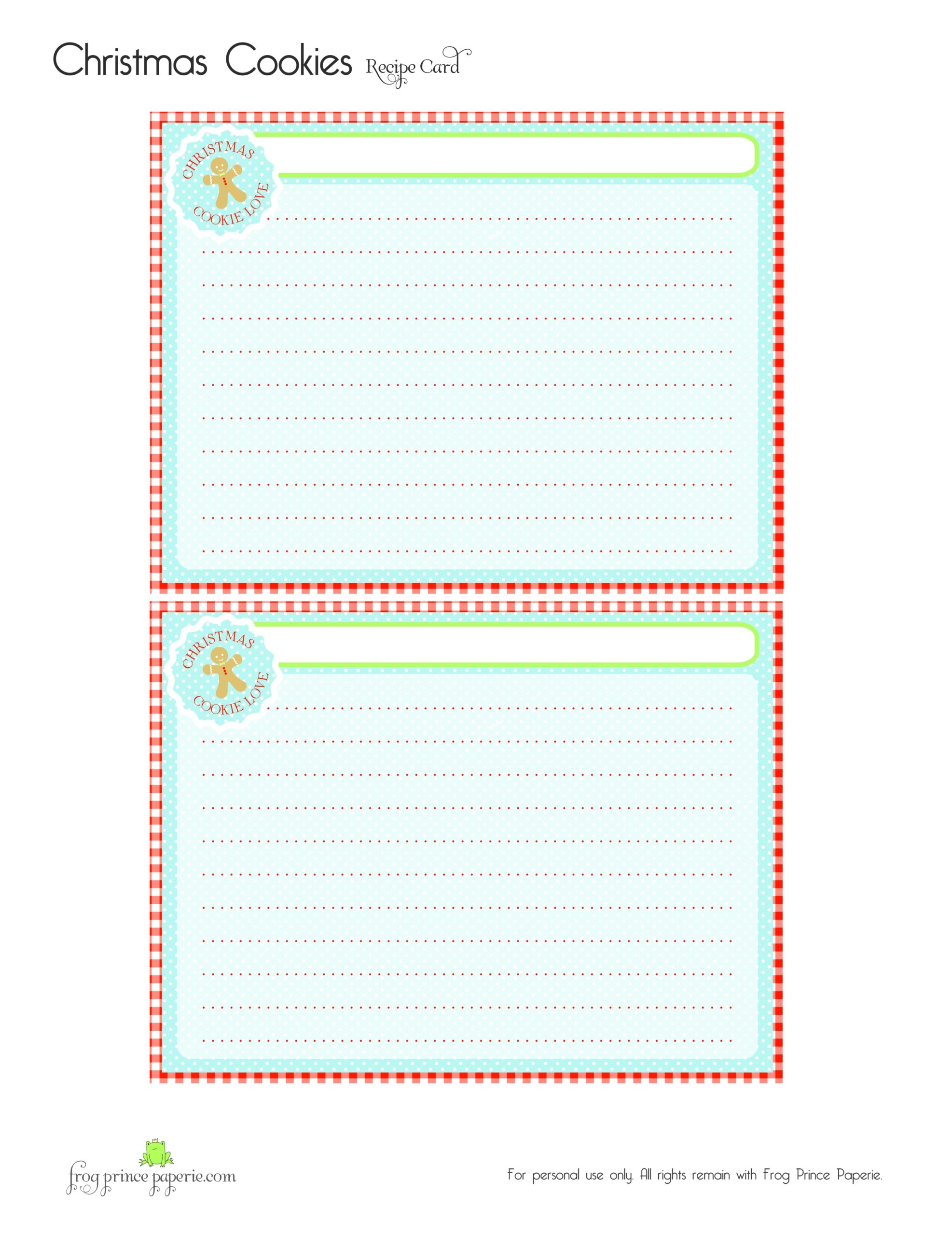 Free Gingerbread Christmas Cookies Free Printable Recipe Card Frog Prince Paperie
