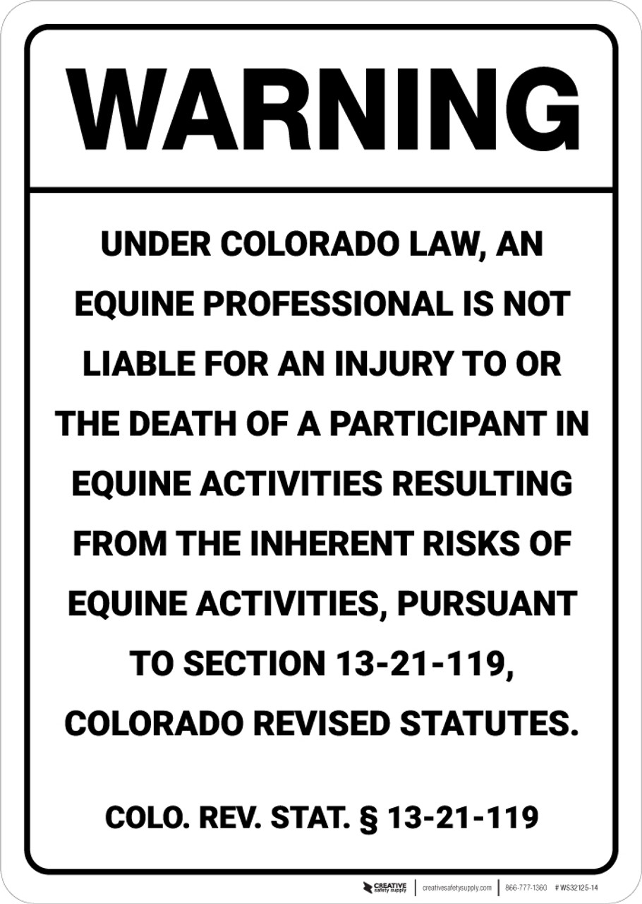 Amazon Colorado Equine Sign Activity Liability Warning Statute Horse Farm Barn Stable Industrial Scientific