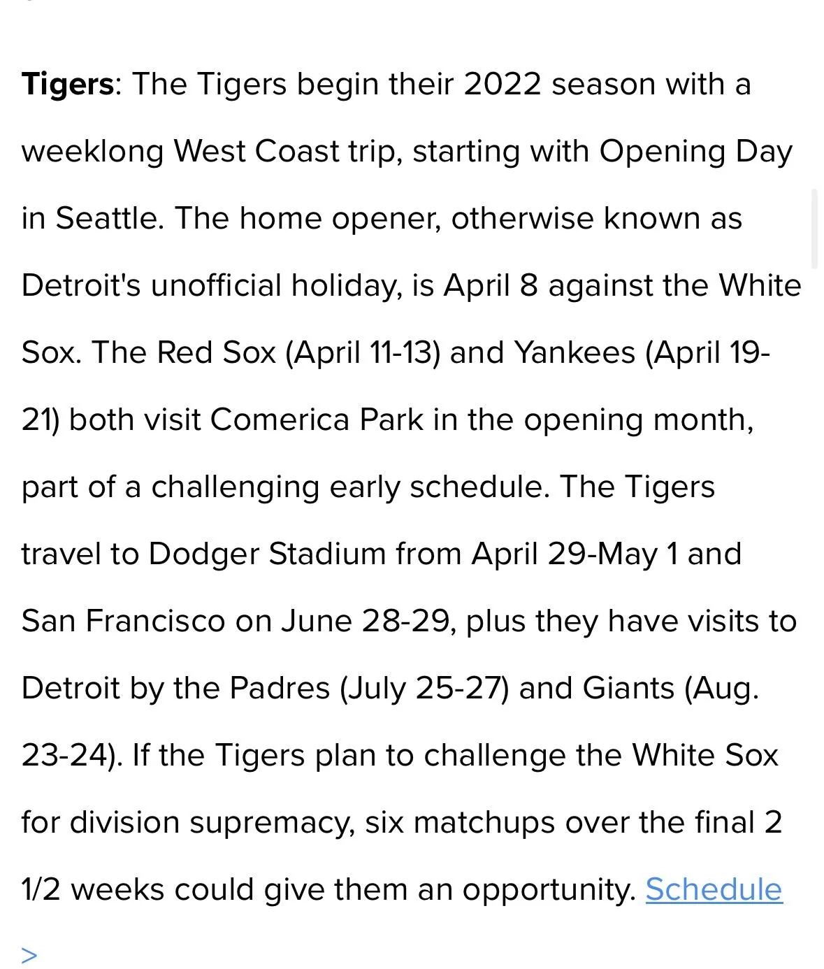 Printable Schedule Detroit Tigers