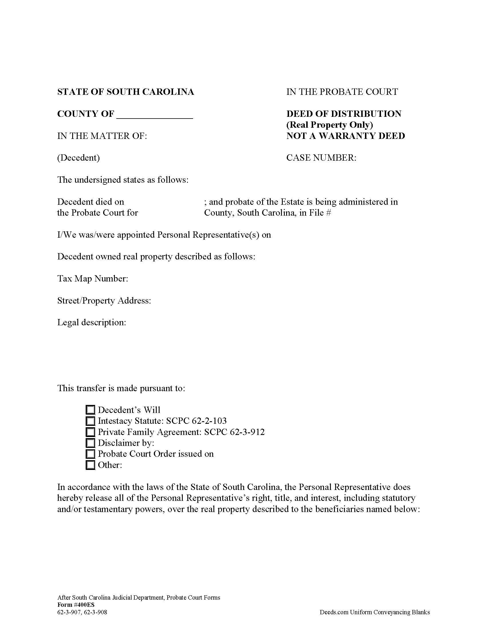 Horry County Personal Representative Deed Of Distribution Form South Carolina Deeds