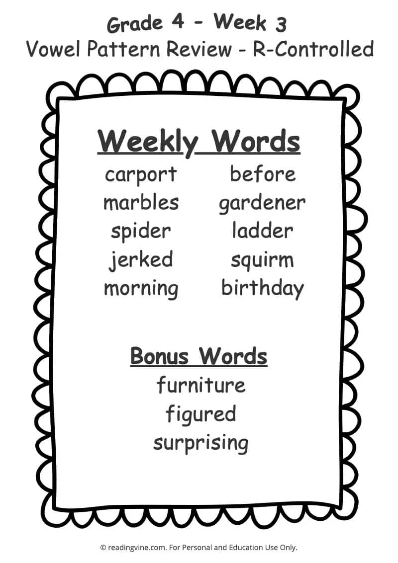 4th Grade Spelling Words ReadingVine