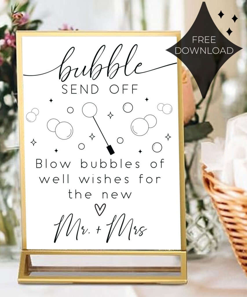 So, if you’re looking for a fun and creative way to incorporate interactive elements into your wedding, consider using a free printable bubbles sign. It’s a simple, budget-friendly, and charming addition that will make your special day even more memorable for you and your guests.