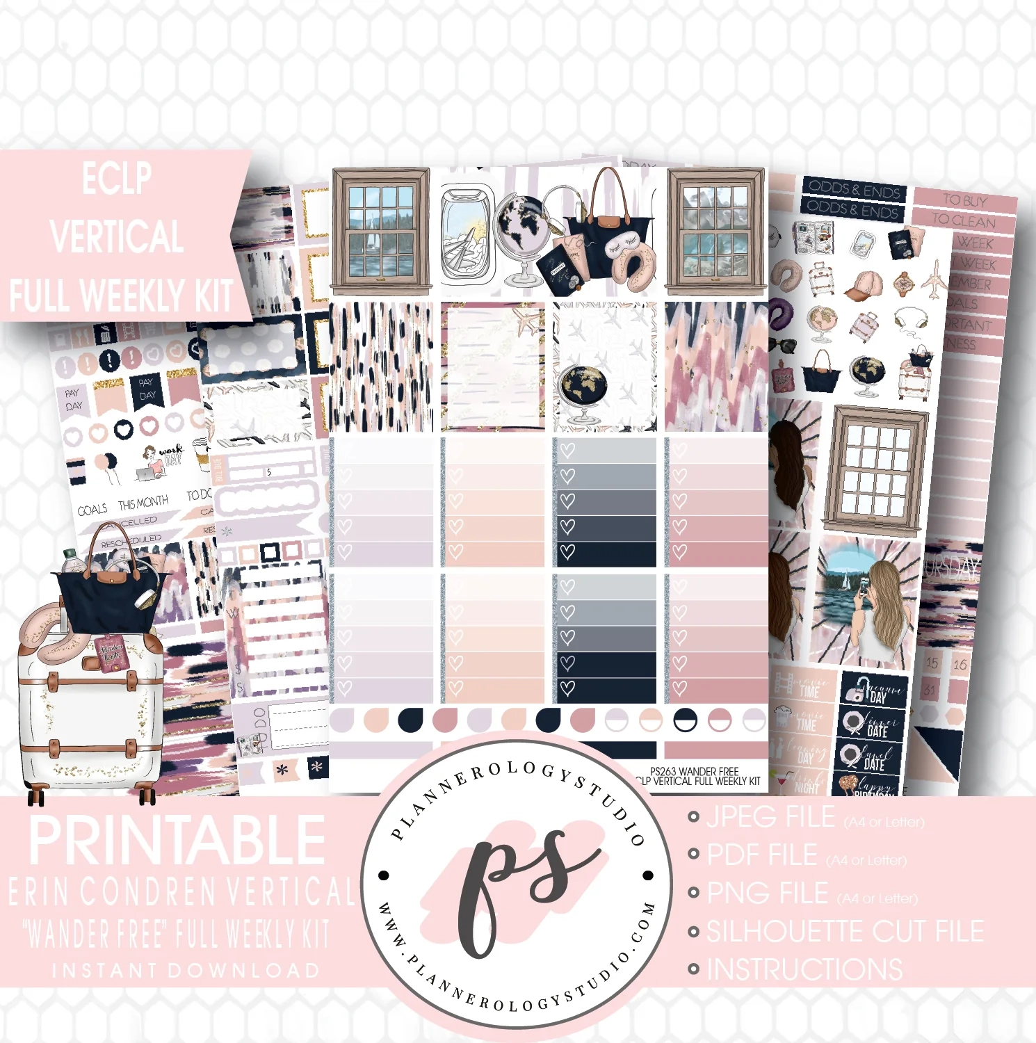 Wander Free Full Weekly Kit Printable Planner Stickers for Use With S Plannerologystudio
