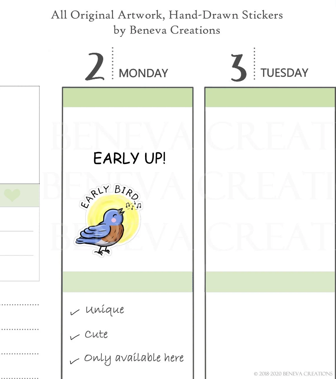 Early Bird Stickers Bird Stickers Singing Stickers Morning Stickers Wake Up Stickers Cute Stickers Planner Stickers CL 015 Etsy