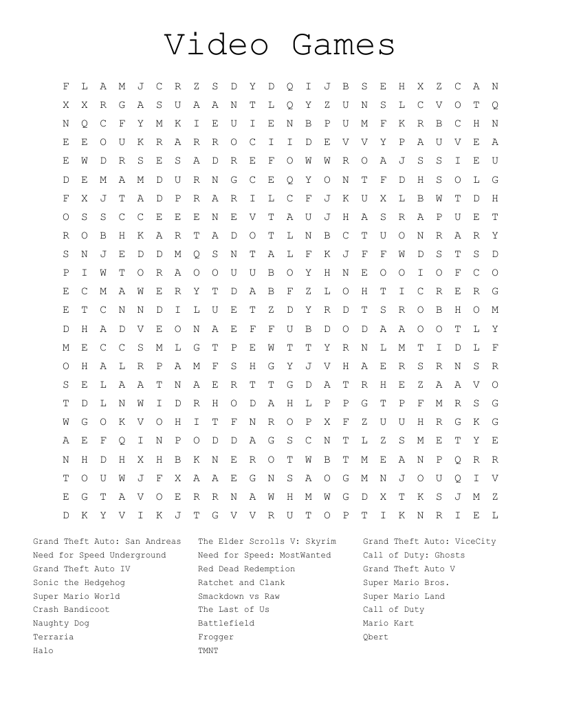 Grand Theft Auto Word Search WordMint