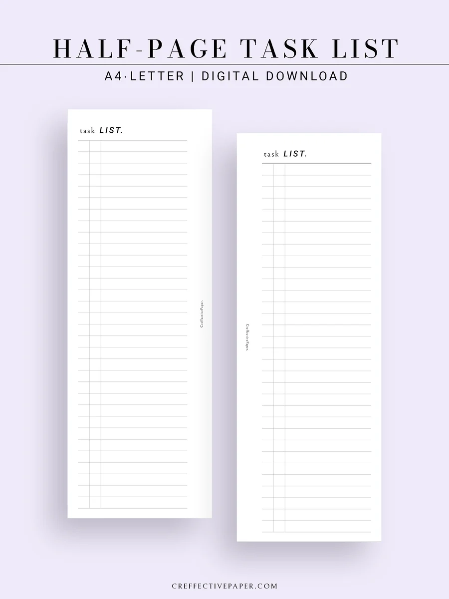 D115 Half Page Task List Template Printable Planner Inserts CreffectivePaper
