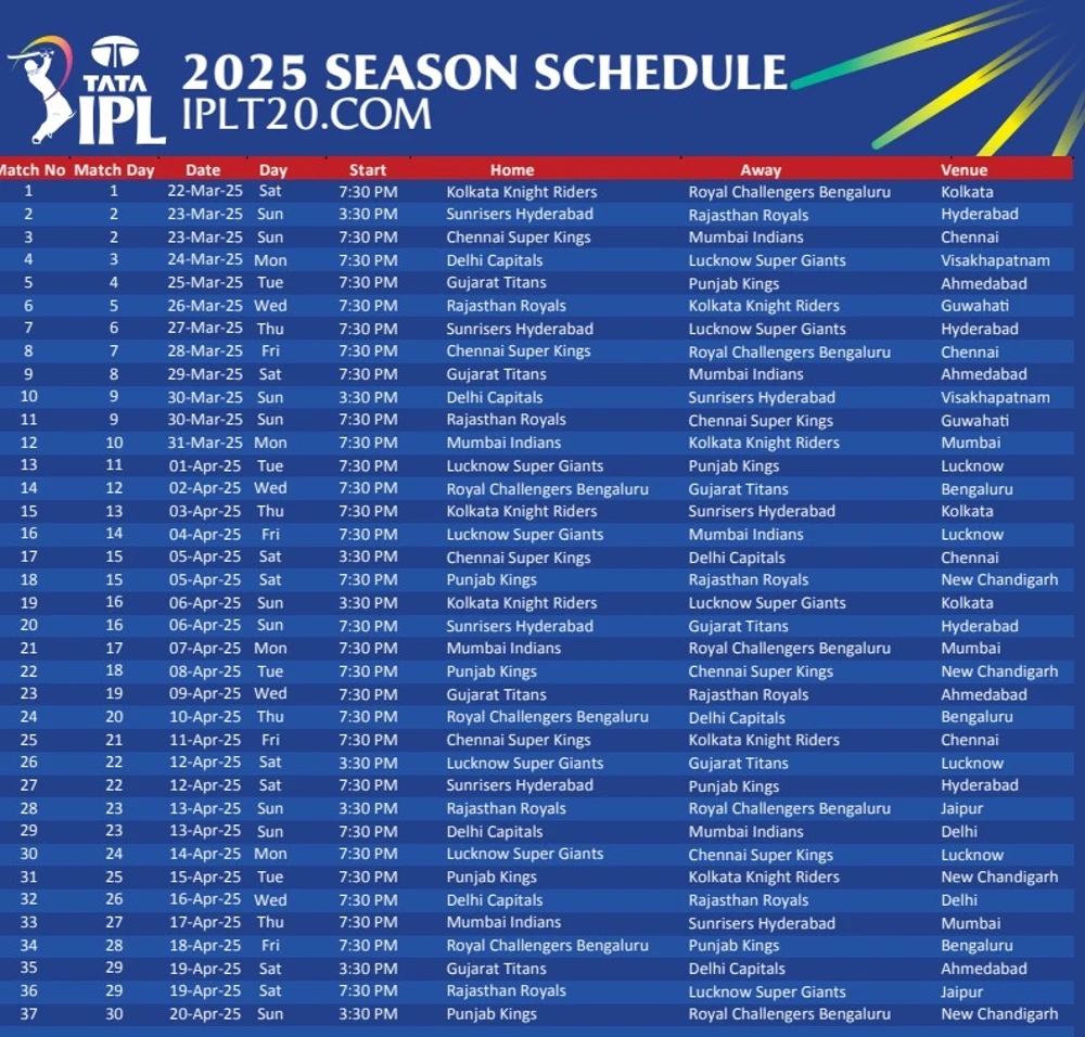 IPL Schedule 2025 Match Dates Time Table PDF Download And Venues Today