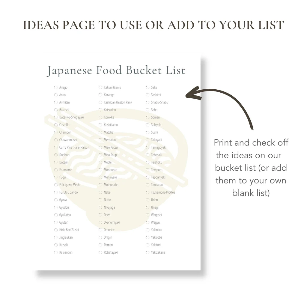 Printable Japanese Food Bucket List Blank Template Included Buck Co