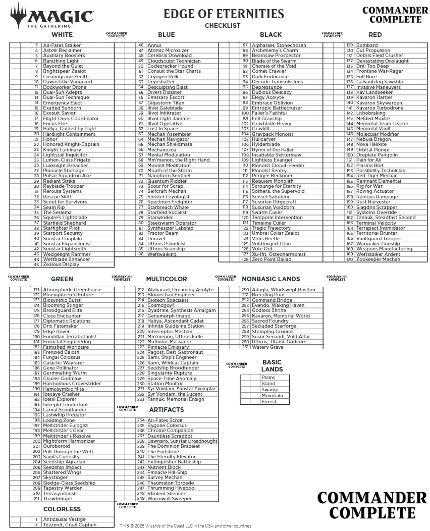 EDGE OF ETERNITIES Complete Full Set Factory Sealed EOE MTG Magic CommanderComplete