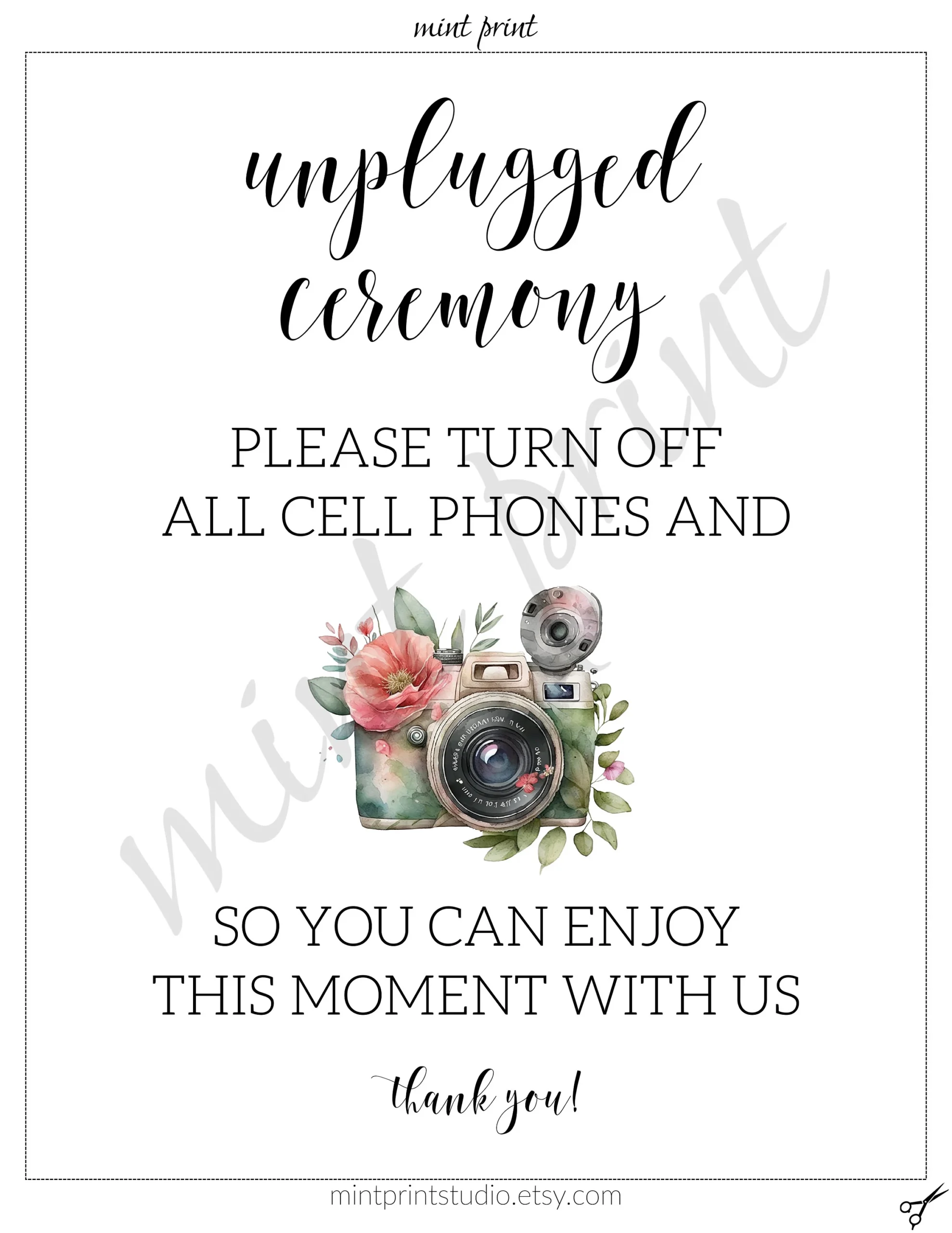 Unplugged Ceremony Sign No Cell Phones Wedding Announcement PDF JPG Etsy