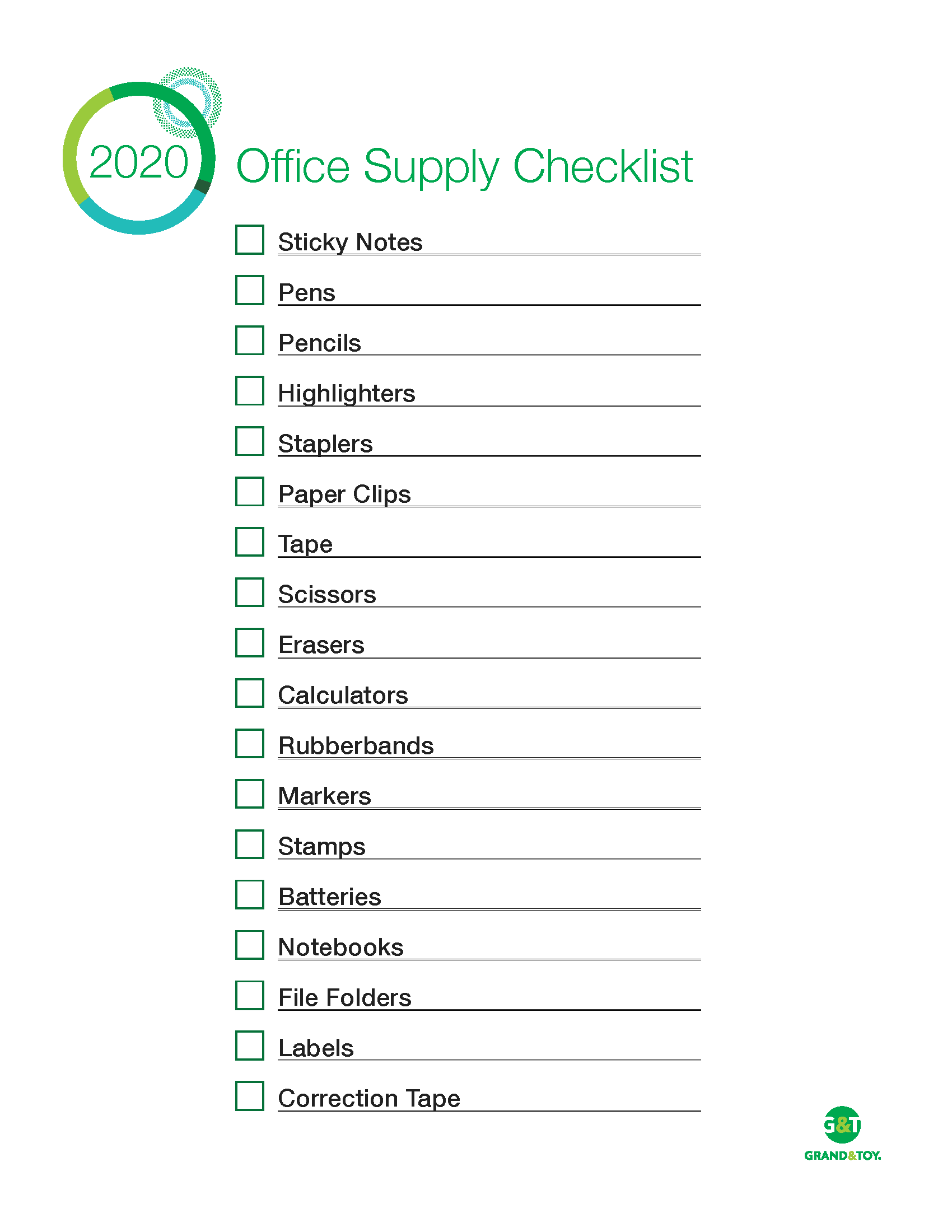 Office Supply Shopping List Printable