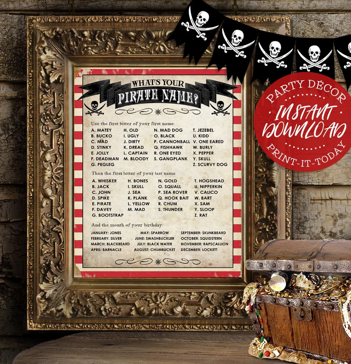 What s Your Pirate Name Party Game Printable Buccaneer Sign With Name Tags And Cards Pirate Treasure Chest Birthday Games Instant Download Etsy