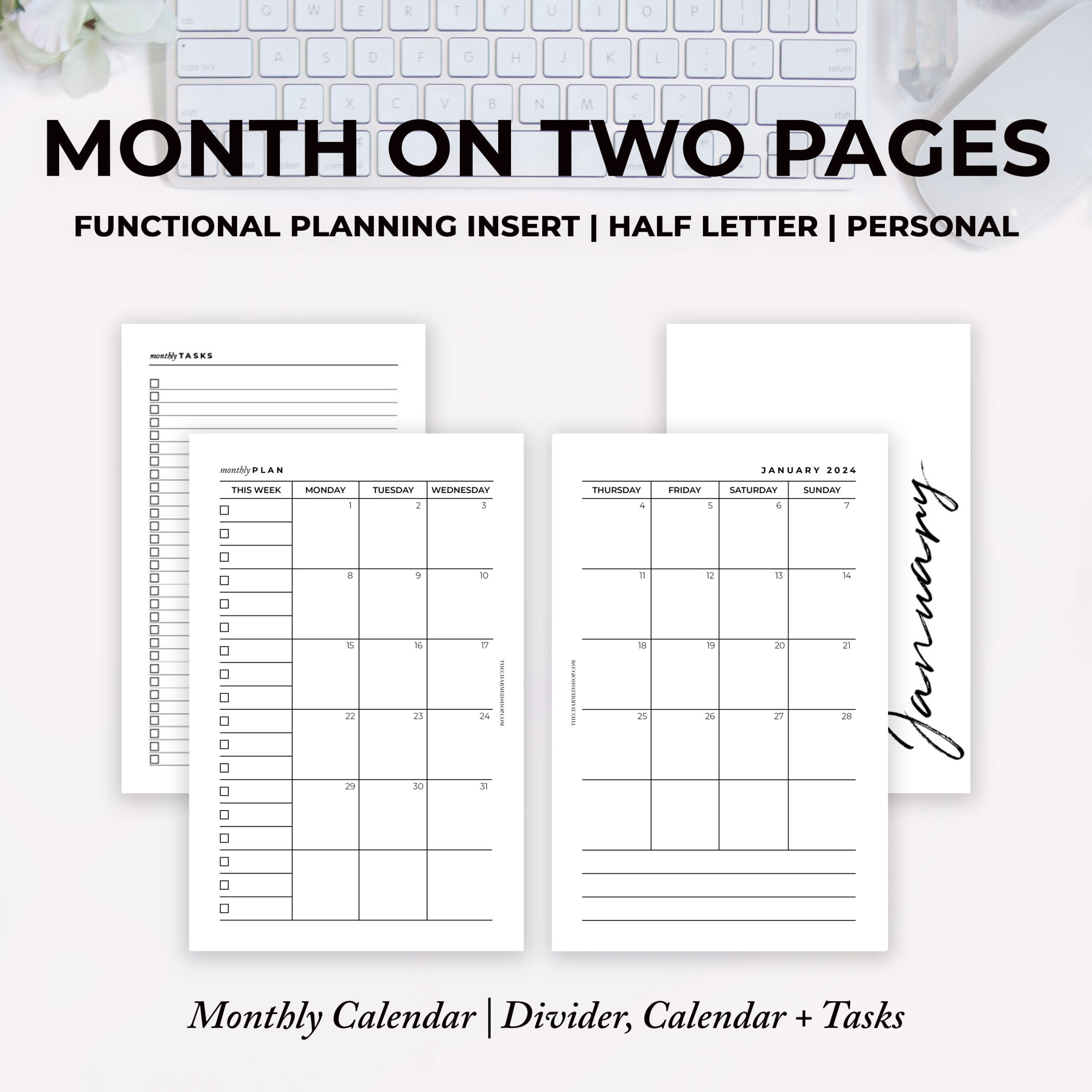 2024 Month On Two Pages Calendar Printable PDF The Charmed Shop