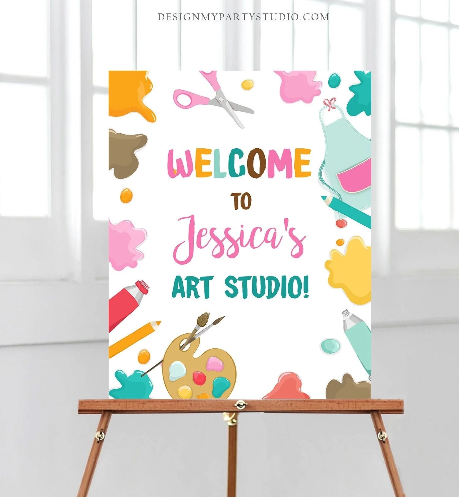 Editable Painting Party Birthday Welcome Sign Art Party Birthday Decor Design My Party Studio