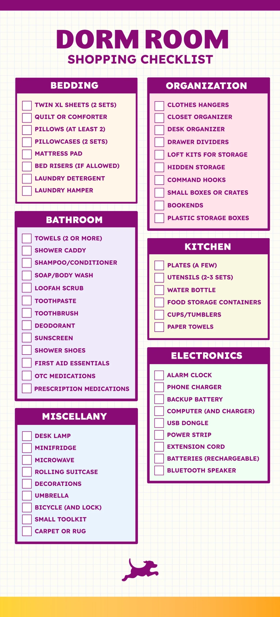 From bedding to school supplies, our list covers it all. Simply print it out and check off items as you shop. No more forgetting essential items or making multiple trips to the store – our list has got you covered!