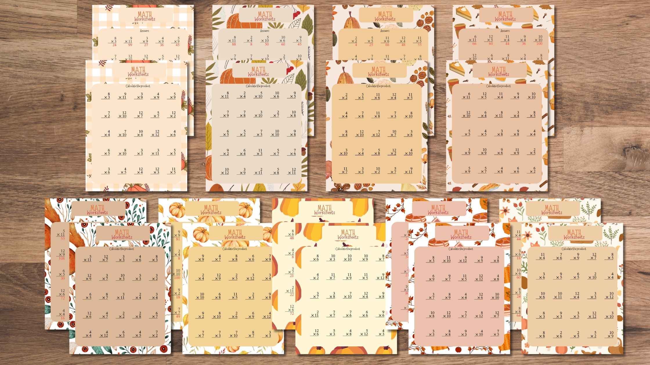 These printable fall multiplication practice sheets are designed to make learning math enjoyable and effective. With autumn-themed graphics like pumpkins, apples, and leaves, your child will be motivated to practice their multiplication facts.