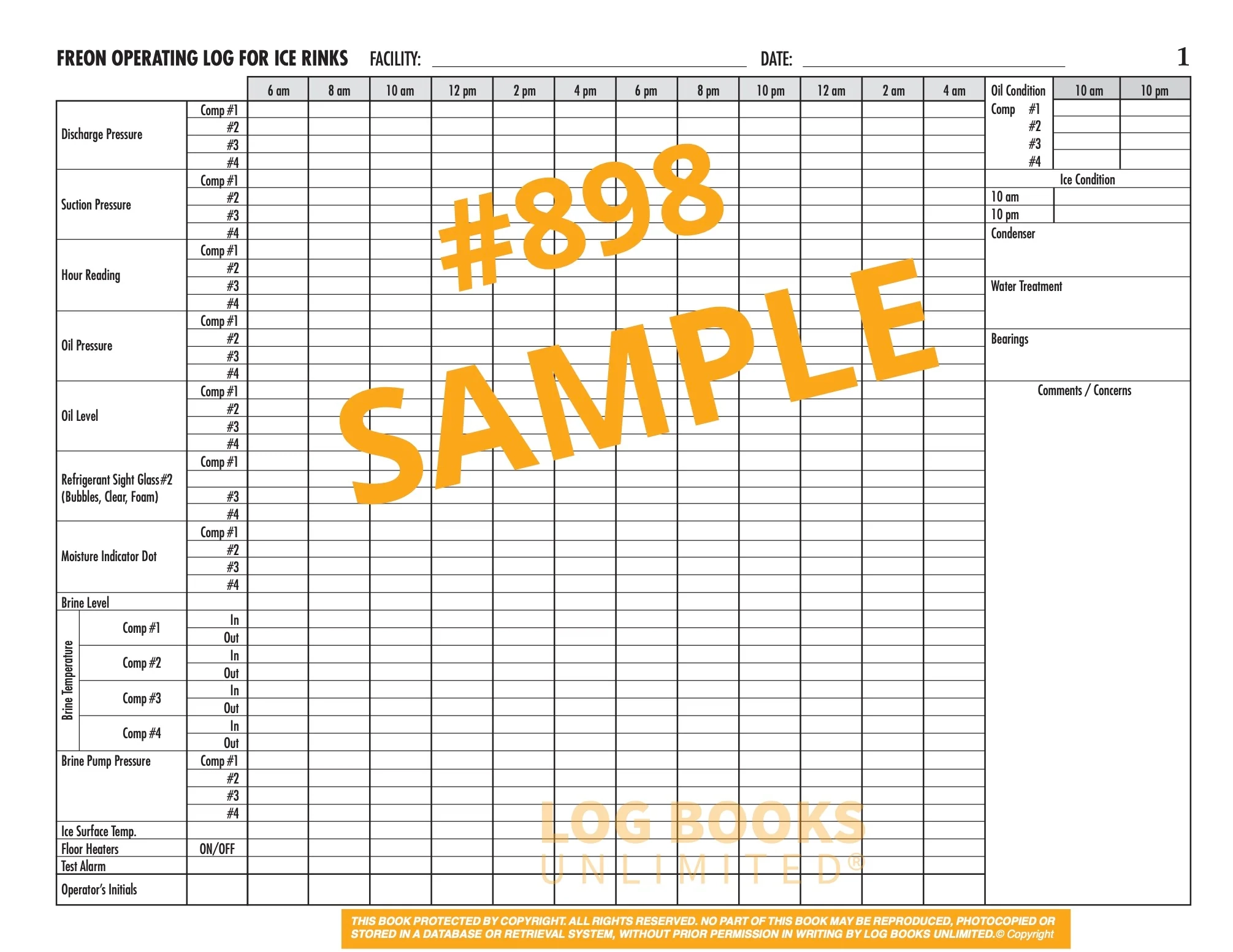 Ice Rink Refrigeration Log Book 4 Compressors Freon 898 Log Books Unlimited