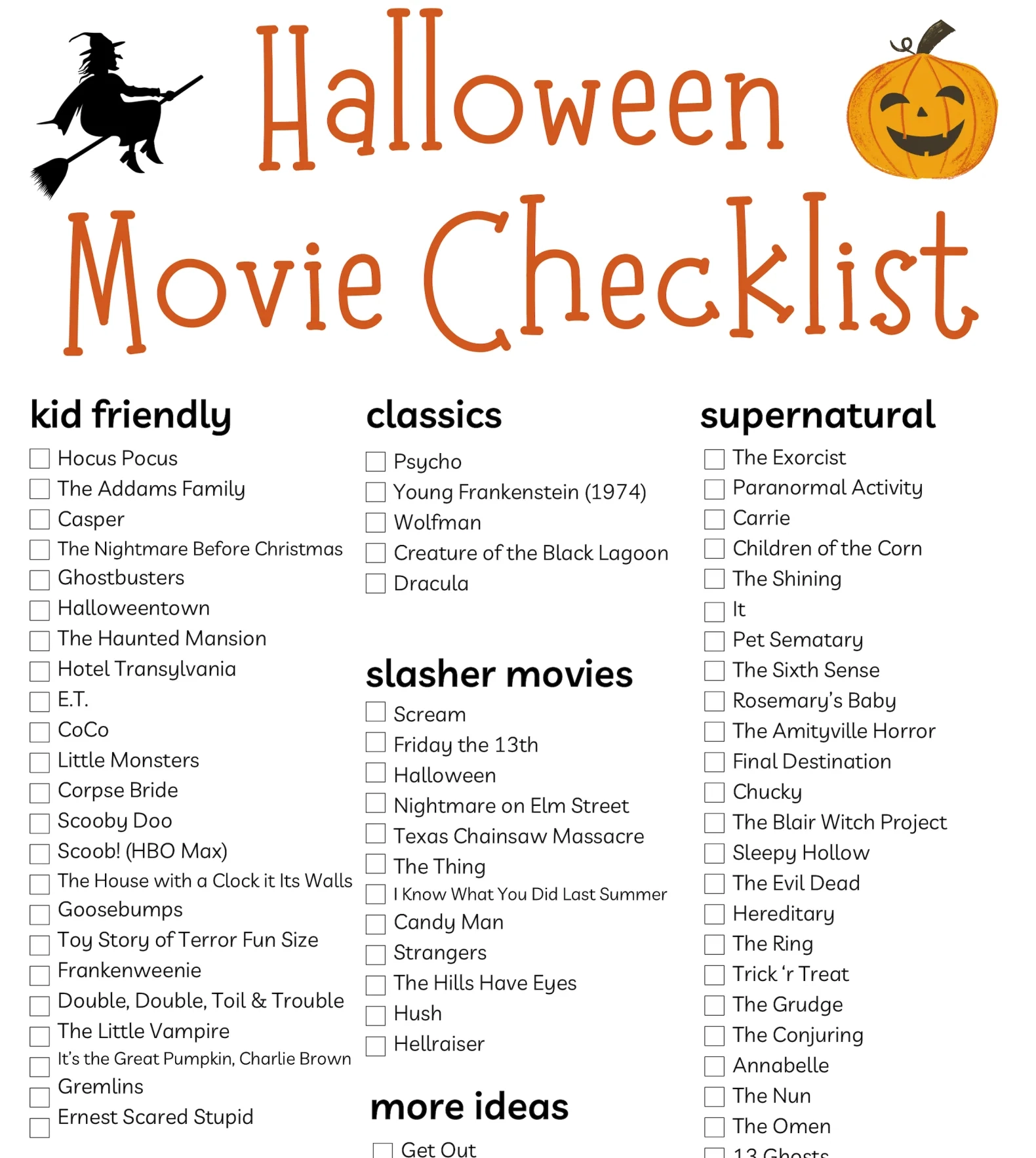 Printable Halloween Movie Checklist PDF Kim And Kalee