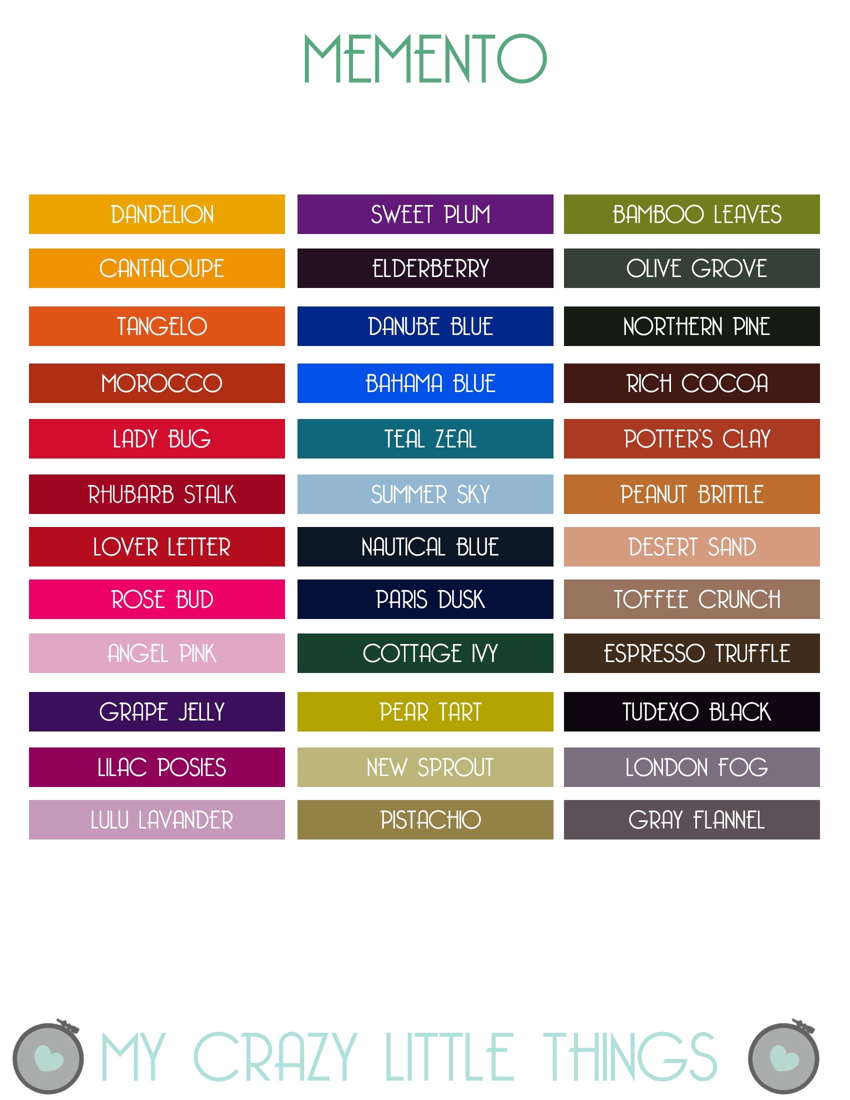 Printable Memento Color Chart