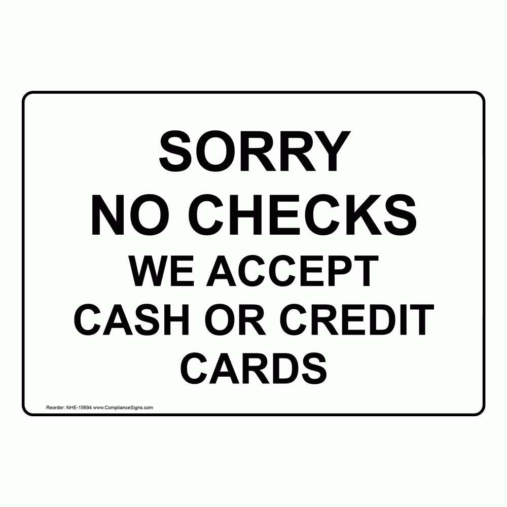 Retail Sign Sorry No Checks We Accept Cash Or Credit Cards