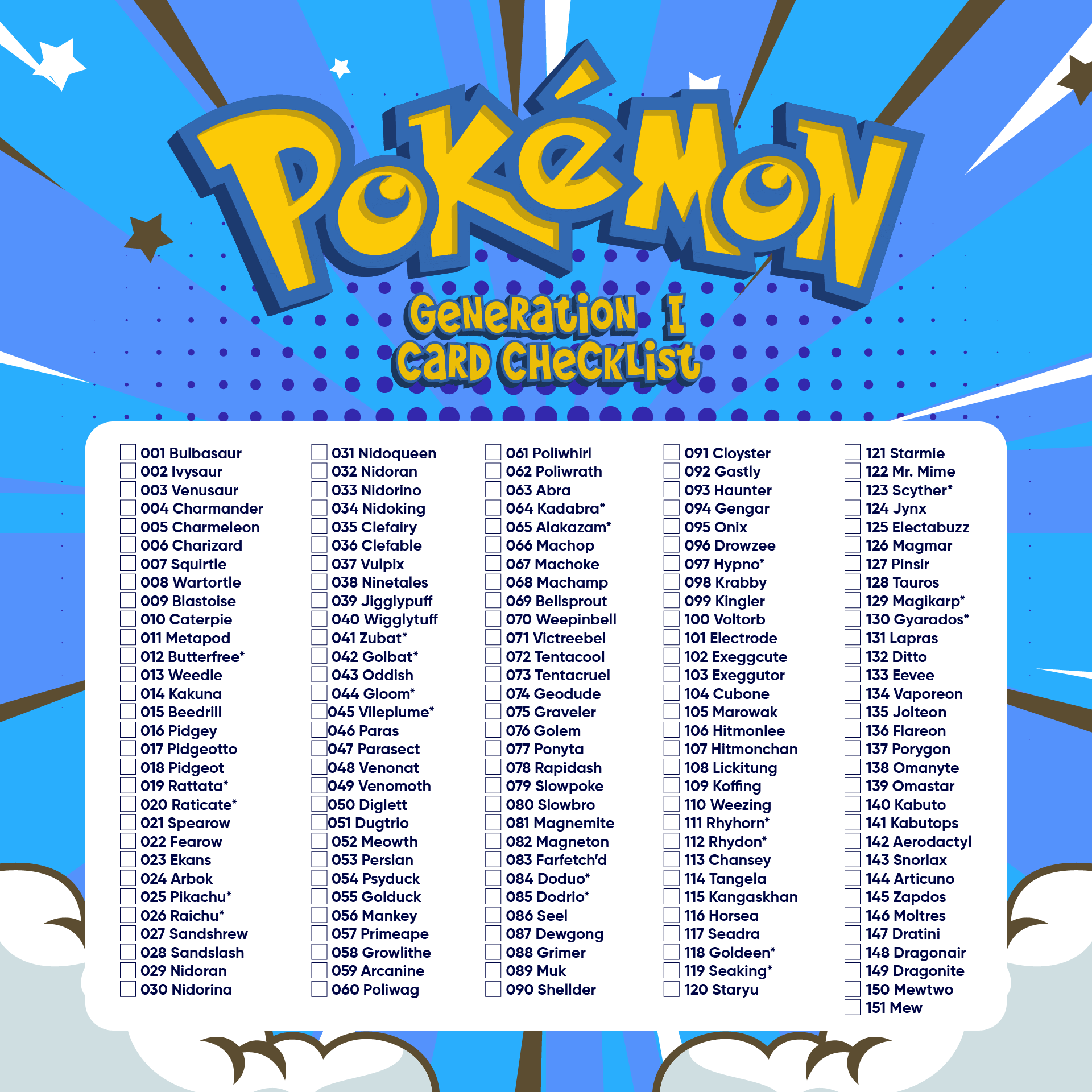 Pokemon Checklist Gen 1