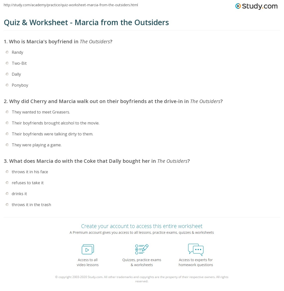 Quiz Worksheet Marcia From The Outsiders Study