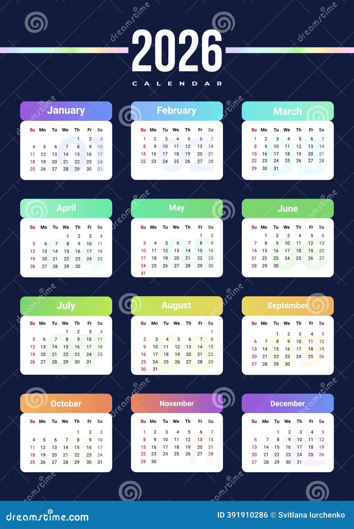 Calendar 2026 With Week Start Sunday Vector Corporate Design Layout For Print Wall Calendar Digital Calendar Stock Vector Illustration Of 2026 Corporate 391910286