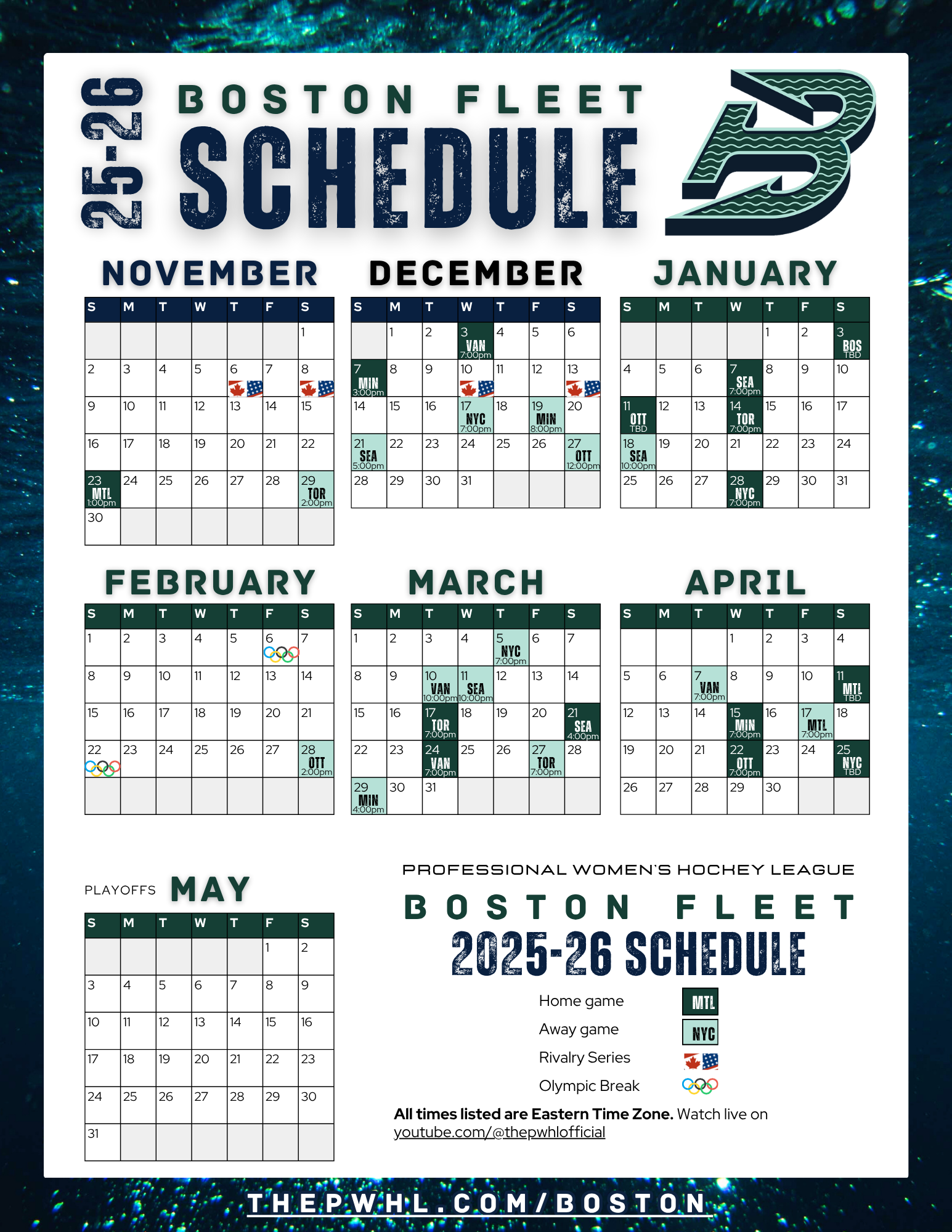 Printable Season Calendars For 2025 2026 Teams R PWHL
