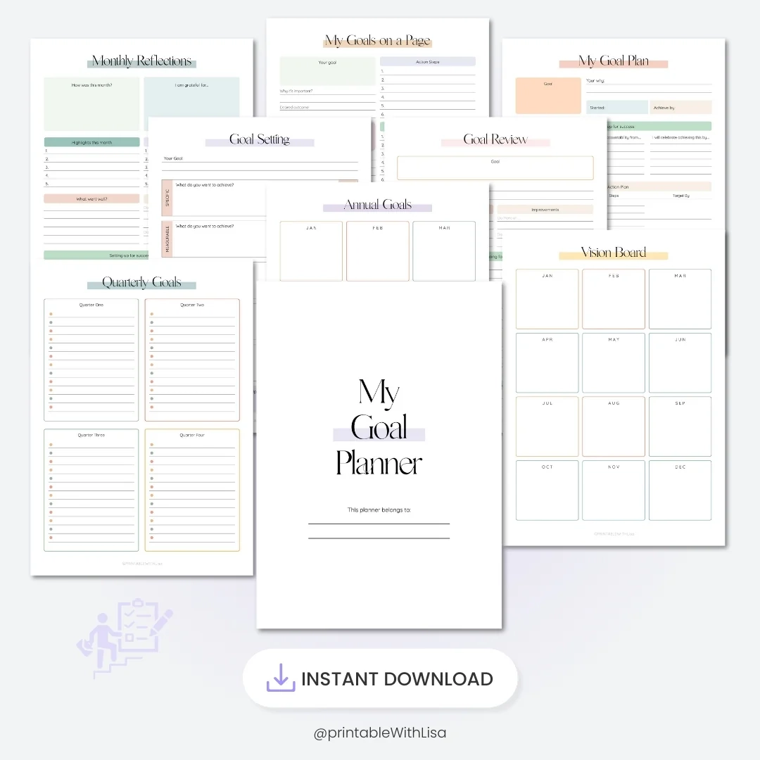 Goal Planner Kit Printable SMART Goals Vision Habit Tracker PRINTABLE WITH Lisa