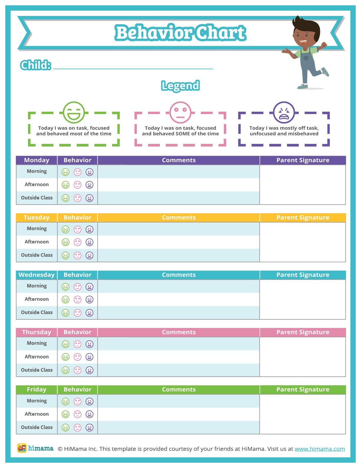 With our printable chart, you can easily monitor your child’s behavior in the morning and afternoon. Simply fill in the chart each day with your child’s behavior, and at the end of the week, you can review their progress together.